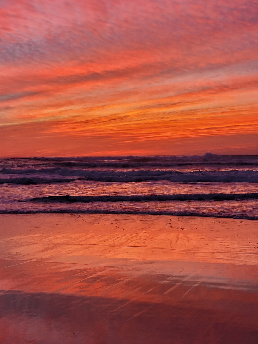 沙滩上的落日余晖,配上红色背景图,简直是绝美壁纸😍!