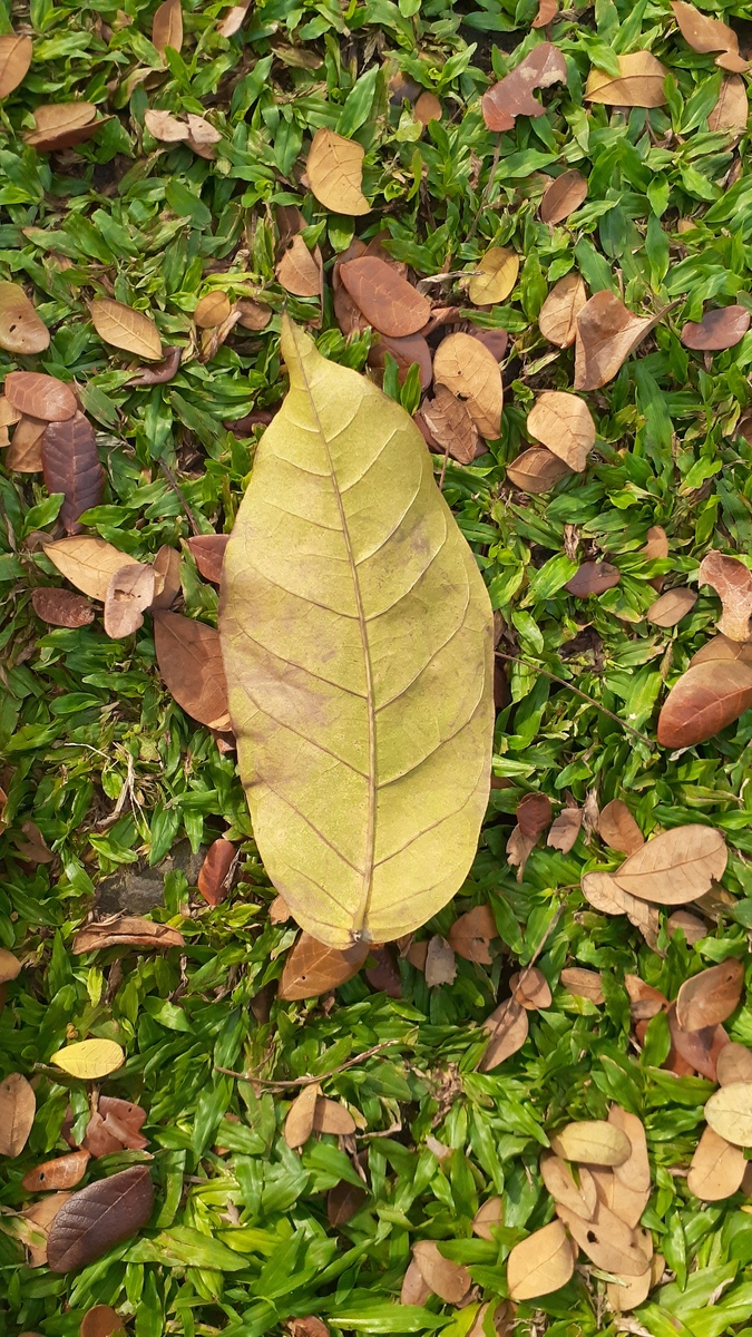 在绿色草地上的落叶