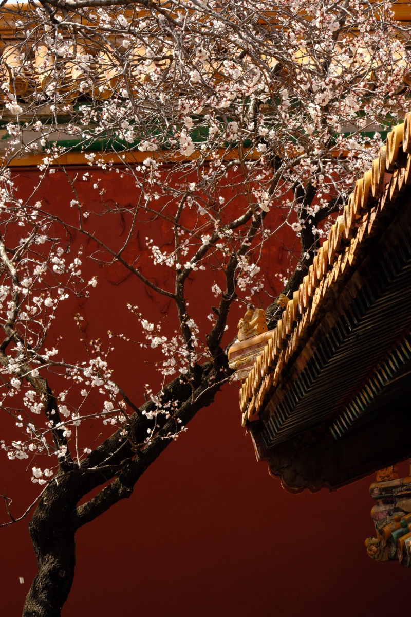 紫禁城中春意浓,红墙黄瓦映日红
